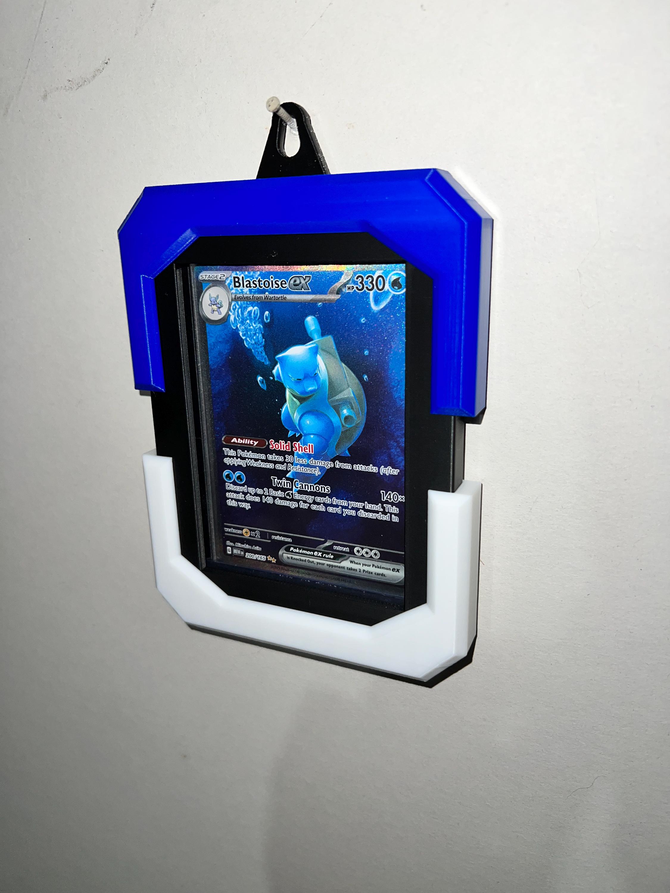 This is a 3D printed wall display frame made specifically for Pokémon cards inside hard plastic toploader cases. Just slide your card in—no screws or tools needed—and hang it up!